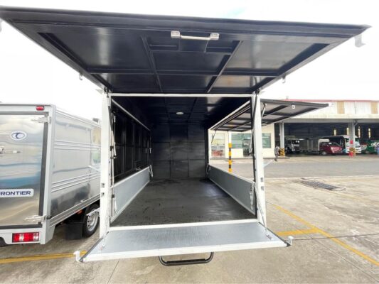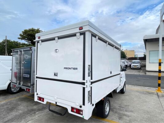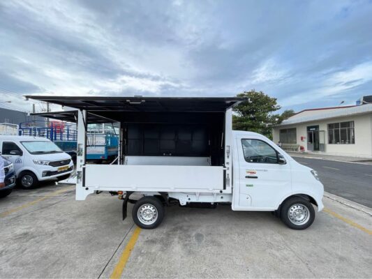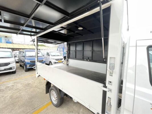 Khung vĩ mảng hông có thể mở ra 87˚, để làm mái che khi bán hàng hóa. Bửng hông, bửng sau mở ra 90˚, tăng diện tích trưng bày và bán hàng hóa. Mui thùng xe có thể điều khiển nâng lên 400mm và hạ xuống thông qua công tắc, tăng chiều cao của thùng, thuận tiện khi bán hàng hóa.